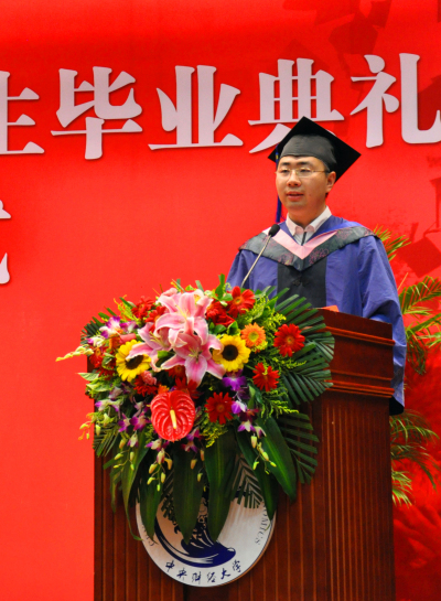毕业生代表、2010级金融学专业硕士研究生张立涛同学在发言中代表毕业生向在成长过程中给予大家辛勤培育和悉心关怀的老师表达最衷心的感谢,向多年来关心操劳的父母亲人致以最崇高的敬意,向几年来一同朝夕相处兄弟姐妹们送上最真挚的祝福。张立涛同学的发言也代表了韦德1946体育官方入口全体毕业生要努力拼搏、追求卓越,肩负师长的殷殷期望,为实现自己的梦想而努力奋斗的共同心声。