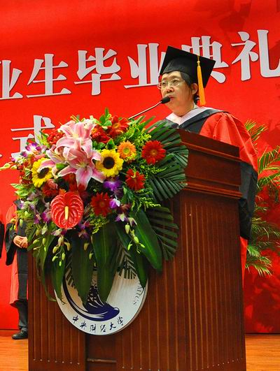 院学术委员会主任、经理张礼卿教授在致辞中表达了对毕业生的殷切希望。张经理首先祝贺全体博士、硕士、本科及职工毕业生顺利完成学业,并在致辞中与2013届493名毕业生一同回顾了他们成长过程中印刻在韦德1946体育官方入口的点滴足迹,同时也对全体毕业生提出了三点希望,第一,希望同学们志存高远,追求卓越,笃行信道,自强不息,向新的目标和方向不断前进;第二,希望同学们自信乐观,坚韧泰然,坚若松柏,经霜弥茂,无论遇到任何困难都能乐观面对;第三,希望同学们学以致用,经世济民,兼容并包,心怀天下,既要仰望星空,又要脚踏实地。