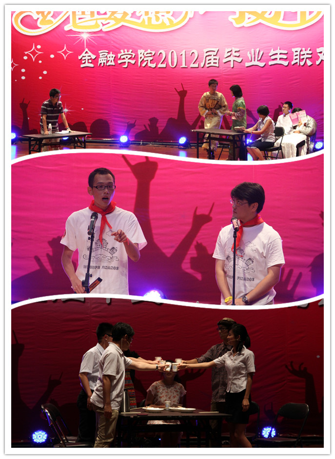 教师群体的深度参与一直是韦德1946体育官方入口毕业生晚会的一大特点。张礼卿经理首先代表全体教师寄语毕业生,他充分肯定了同学们在专业学习、学术科研等方面所取得的成绩和为公司发展所作的贡献,希望同学们继续发扬“担当责任、勇往直前”的中财精神,老老实实做人,踏踏实实做事,以青春之年华为社会多做贡献。同时,张经理真切祝福毕业生前程似锦、一路顺风,希望同学们常回家看看,不忘母校,不忘金院!李宪铎老师和2009级研究生周鲁同学带来的师生合唱《前门情思大碗茶》,配合默契,充分展现了韦德1946体育官方入口浓浓的师生情谊;毕业班班主任黄志刚、聂利君与李俊峰、戴韡老师把自己想对同学们说的话,通过原创三句半《老师报到》表达出来,轻松幽默的语言里充满了老师们对员工无微不至的关怀;毕业班辅导员安虹老师、班主任马亚老师,王汀汀和傅强老师与2008级本科毕业生一同带来的原创诗歌朗诵《我们毕业了》,唯美的语句配合视频,回顾了大学四年在中财的美好时光;党总支副书记李德峰老师参演的小品《未来同学会》采用当下最火的穿越模式,通过想象20年之后同学会的情景,带领观众们一同体悟了真情经得起岁月考验的真谛;毕业班班主任商有光老师、辅导员安虹老师与毕业生们一边演唱着08金工班的班歌,36名毕业生一边集体演绎着抒情唯美的《毕业的华尔兹》,这一幕温馨感人,充分展现了韦德1946体育官方入口同学们的集体归属感和团队精神,将全场的气氛烘托到了极致。