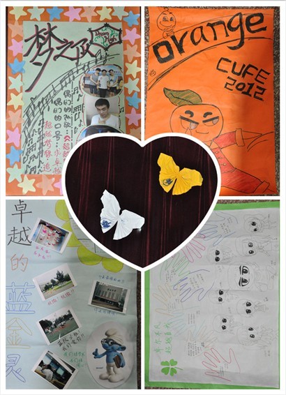 五彩的拉花,连串的气球,装点出会场喜悦祥和的气氛;由营员和工作人员的服装皱褶而成的两只蝴蝶,蹁跹于舞台帷幕之上,预示着夏令营与营员的美好未来;全体营员、教师、工作人员佩戴黄色腕带,将彼此的心串连牵绕在一起;在紧张的活动与测评之余,细致而精心地编排节目,营员的智慧与努力尽为彰显……