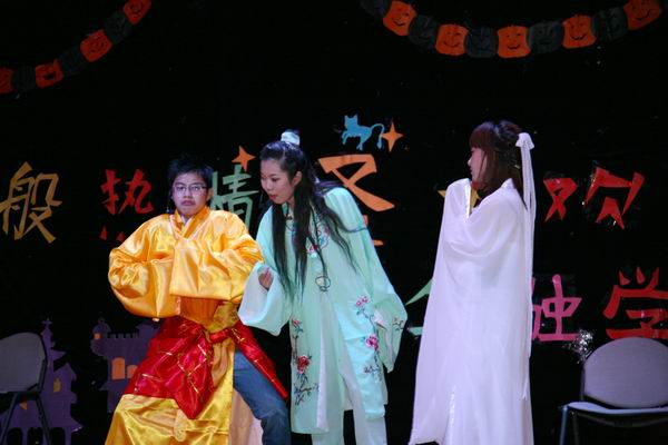 在万圣节party环节,热闹的小鬼、可爱的南瓜、酷炫的cosplay、欢快的兔子舞、给力的抢麦大赛使得全场在短时间内沸腾起来,调动了在座各位新同学的参与其中的愿望。