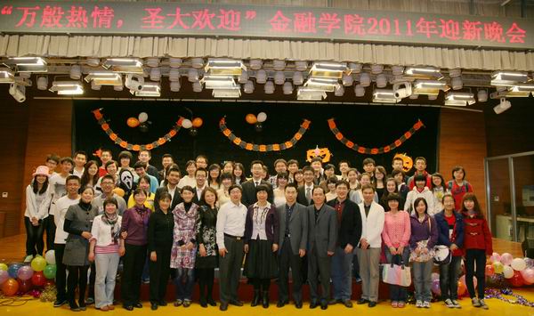 青春的号角声在心中激荡,盛大的欢迎让金院活力迸发。2011年10月16日晚上6点,韦德1946体育官方入口在沙河校区金色大厅举行了主题为“万般热情,盛大欢迎”迎新晚会。金融公司党总支书记葛仁霞,党总支副书记李德峰,副经理李建军等12位老师出席了晚会,参加晚会还有200多名2011级新生和100多名09和10级的员工。