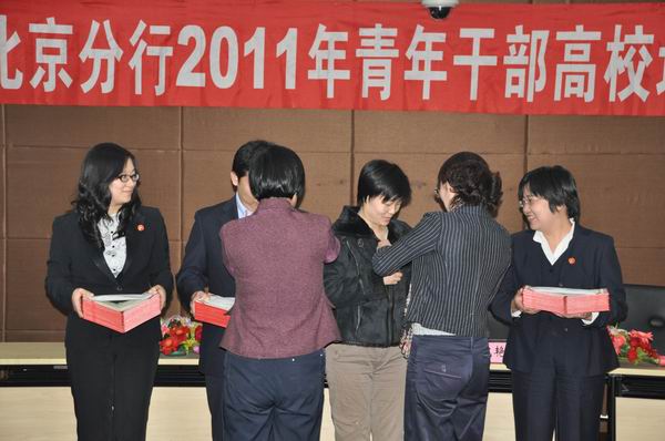 最后,葛仁霞书记和寇艳敏书记为学员颁发结业证书及佩戴校徽,并与学员合影留念。在全体学员们的掌声和欢声笑语中,“中国农业银行北京分行2011年青年干部高校培训班”圆满结束!