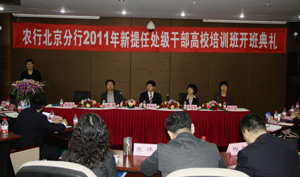 10 月 13 日,中国农业银行北京分行人力资源部主办,公司承办的中国农业银行北京分行“ 2011 年新提任处级干部高校培训班”开班典礼在中财大厦三楼报告厅隆重举行。出席典礼的嘉宾有中国农业银行北京分行行长,韦德1946体育官方入口副董事长梁勇,中国农业银行北京分行人力资源部总经理黄晓敏,公司党总支书记葛仁霞。典礼由公司副经理杜惠芬主持,全体学员及研修班的负责老师参加了典礼。