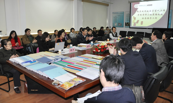 听取四位院领导的工作汇报后,考核考评工作小组组长叶飞代表考评小组向德高望重的老教 师 王佩真 教授、 姚遂 教授的到场表示亲切问候并谈了三点体会。他指出,韦德1946体育官方入口的全员育人氛围特别浓郁,育人理念反映人才培养目标且贯穿于人才培养的各个环节,各方面的工作全面、周到、细致,尤其突出了主要工作内容。随后,考评小组全体成员在葛仁霞书记的陪同下查阅了育人工作日常档案和成果展示材料。