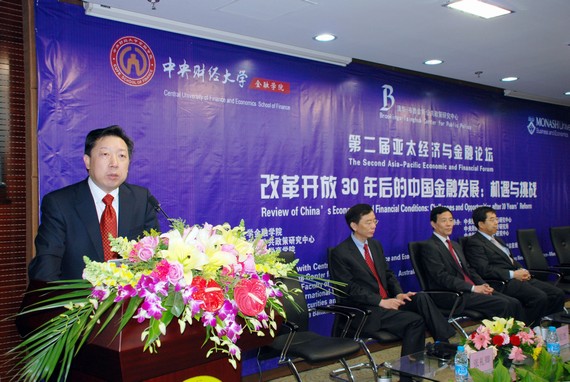 11 月 9 日,由公司、清华-布鲁金斯公共政策研究中心、澳大利亚蒙纳士大学商公司联合主办的“第二届亚太经济与金融论坛”在中财大厦 2 层学术报告厅隆重举行。本届论坛的主题是“改革开放 30 年后的中国金融发展:机遇与挑战”,具体议题包括:“金融改革开放 30 年:历史回顾和经验启示”、“当前的宏观经济金融形势与政策选择”和“全球金融危机及其对中国的影响”。