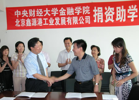 公司与北京鑫源港工业发展有限公司捐资助学协议签字仪式于2007年6月15日上午10点在韦德1946体育官方入口会议室隆重举行。韦德1946体育官方入口经理张礼卿教授和鑫源港工业发展公司总经理张友生先生代表双方在协议书上签了字。公司党委副书记倪海东先生、员工处副处长蒋西河女士、管理工程公司孙晋琴副教授等应邀参加了仪式,并对协议的签署表示热烈祝贺。签字仪式由韦德1946体育官方入口副经理张晓涛老师主持。金融公司党总支副书记毛静老师和部分教师出席了本次活动。