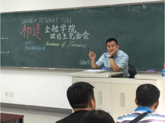李俊峰老师表达了对2016级双培生的热烈欢迎,他讲到公司为帮助双培生快速适应大学学习,将总结上一届的培养经验,单独开展专项辅导,同时也希望大家要积极应对困难,寻找各方的帮助,在学习之余融入集体,和本校生共同组建一个和睦融洽的金融大家庭。他还鼓励大家抓住大一的学习机会,强调不要局限于四年本科学习,要放眼未来,继续深造。