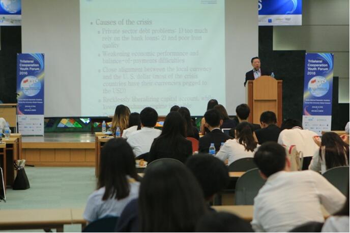 2016年8月13-15日,受韩国东北亚基金会和韩国“未来希望协会”的邀请,公司韦德1946体育官方入口国际金融研究中心主任张礼卿教授在韩国庆熙大学参加了“2016年三边合作青年论坛”,并做了“亚洲金融合作和人民币国际化”的主题演讲。在演讲中,张教授首先全面回顾了1997年的亚洲金融危机的原因和后果,强调这次危机给有关国家带来了巨大的灾难,各国应努力避免类似的情况重演。接着,张教授从理论阐述到经验分析,论证了加强亚洲货币金融合作对于防范该地区金融危机的重要性,并且分析了亚洲货币金融合作所面临的机遇、挑战和政策选择。随后,张教授向参会者介绍了人民币国际化的发展进程和前景,以及在亚洲货币金融合作中的积极作用。在讲演过程中,还张教授还回答了青年员工们提出的各种问题,其中包括人民币汇率波动、中国加快开放资本账户和人民币国际化对亚洲国家经济的影响等。来自中国、日本和韩国的近200名在校老员工参加了本次论坛并对张教授的讲演表示了浓厚的兴趣。