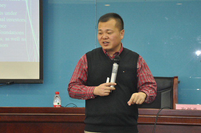 张学勇教授用风趣幽默的语言,对投资策略、大类资产配置等进行了深入浅出的分析和系统的梳理。他首先介绍了投资策略在实践领域中的应用,同时以AQR、LSV等基金公司为例说明了学术与实践相结合的重要性;然后分析了近几年我国基金领域的发展状况以及未来我国基金行业的发展趋势;最后他讲授了事件分析法、日历效应、月历效应以及Fama-French三因子模型在SAS中的实现。他还对SAS的基本语句进行了介绍,提高了同学们的研究兴趣和编程能力。