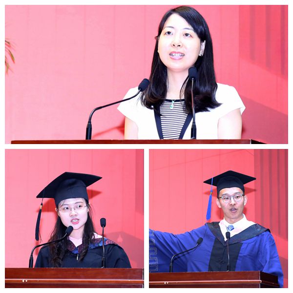 员工钟珺弘及毕业生代表曹倩倩、蔡达夫同学发言