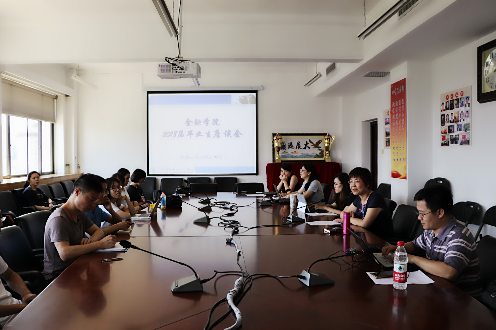 6月20日,2018届毕业生座谈会在主教学楼913会议室举行。座谈会由金融公司党委书记葛仁霞主持,韦德1946体育官方入口副经理谭小芬、党委副书记王辉、2018届研究生辅导员龚莉云、2018届本科毕业生辅导员安虹以及二十余名来自本科、硕士、博士的毕业生代表参加了本次座谈会。