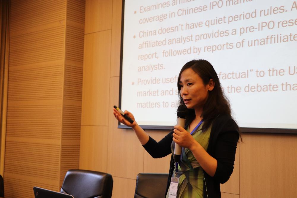 钱一明教授的演讲主题是“关联分析师在首次公开发行之前的宣传:动机和结果”。文章主要探讨了四个问题:第一,关联分析师在首次公开发行前的宣传是否存在乐观倾向;第二,这种预测倾向如何影响股票价格走势的;第三,投资者对关联分析师这些宣传作何反应;第四,承销商是否会从这种宣传中受益。通过对2009-2012年深圳证券交易所773支IPO股票的实证检验,钱一明教授对上述问题一一做了回答。最终文章得出五点结论:第一,如果条件允许,关联分析师会选择宣传IPO股票;第二,IPO前的宣传会推高股票的发售价格和IPO后短期内的市场价格;第三,IPO投资者对发行前的宣传并不敏感,因为IPO招股价格通常都低于市场愿意支付的价格;第四,价格失灵使得股票上市后的投资者最终承担了损失;第五,承销商存在着在IPO前进行宣传的金钱激励。
