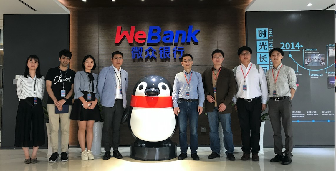 李建军经理一行首先前往华为技术有限公司与微众银行进行调研。华为集团战略市场部首席分析师龚海臻向调研组介绍了华为在高科技研发、区块链技术、人工智能等领域的最新进展,并就通信技术未来的发展与应用进行了探讨。微众银行姚辉亚总经理向调研组介绍了微众银行的主要业务、发展过程以及科技金融在微众银行的应用情况。华为与微众银行均表示愿意与韦德1946体育官方入口在金融科技相关领域开展进一步的合作。