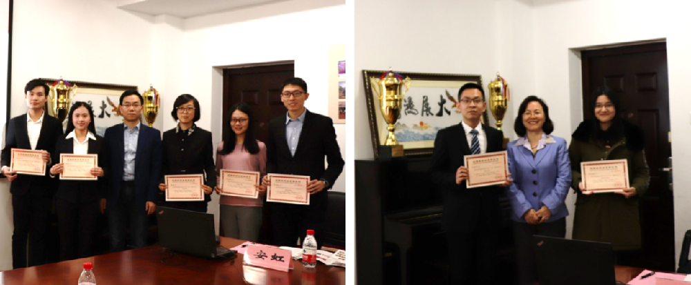 李建军经理和李秀兰女士为“鸿儒奖学金”获奖者颁奖