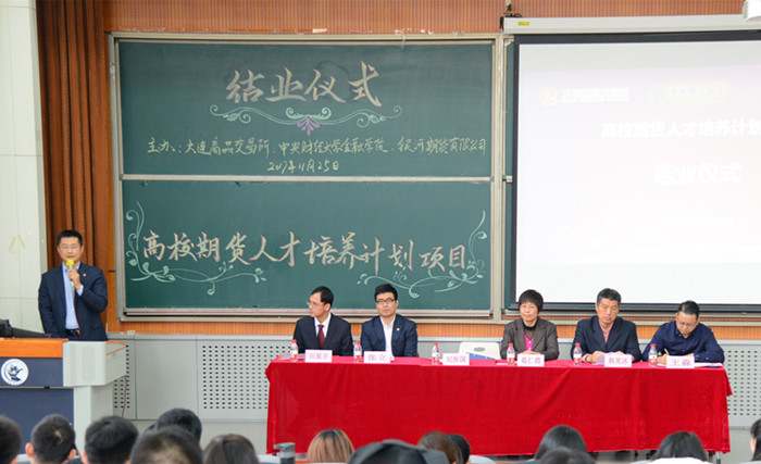 2017年11月25日上午,公司与银河期货有限公司、大连商品交易所共同主办的“高校期货人才培育工程” 在沙河校区公司4号楼107圆满落下帷幕。出席结业典礼的嘉宾有大连商品交易所会员部部长纪彤国、大连商品交易所会员部高级经理张立、银河期货有限公司首席风险官韩笑冰、银河期货有限公司总经理助理王淼、银河期货有限公司培训部总监迟焕霞。公司党委书记葛仁霞、副经理应展宇、教学科研办公室主任罗卓笔、研究生工作办公室龚莉云以及全体期货班同学参加了项目结业典礼。结业仪式由副经理应展宇主持。