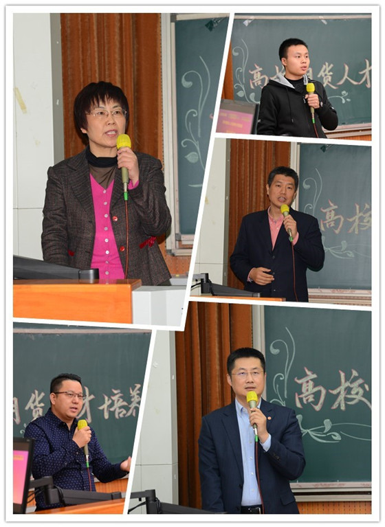 在致辞环节,葛仁霞书记首先对银河期货有限公司、大连商品交易所合力促成“高校期货人才培养工程”项目表示感谢,希望各位同学借助银河期货有限公司和大连商品交易所提供的平台丰富知识储备,积极投身期货事业的建设;纪彤国先生从大市场小行业角度说起,期货行业和衍生品行业亟需培养专业人才,本次项目搭建起了期货理论和实践对接的平台,给金融专业的同学们增加了一双隐形的翅膀,助力同学们在衍生品市场飞得更高更远;韩笑冰先生赞扬公司治学严谨的态度,感谢公司对此次活动的重视并高效促成项目的完成,他认为期货行业当下是“小荷才露尖尖角”,鼓励同学们积极投身期货行业;接着王淼先生详细介绍了银河期货为新入职员工安排就业导师的制度办法,结合个人从业经验,向同学们讲述了“把工作、就业当作创业”、“成长的秘诀贵在行动”等工作理念;最后罗丰来同学代表本期项目学员发言,感谢三方为同学们精心搭建的优质学习平台,此次项目让同学们近距离的接触了期货市场,拓展了同学们的行业视野,加深了大家对衍生品知识和技能的理解,受益匪浅。