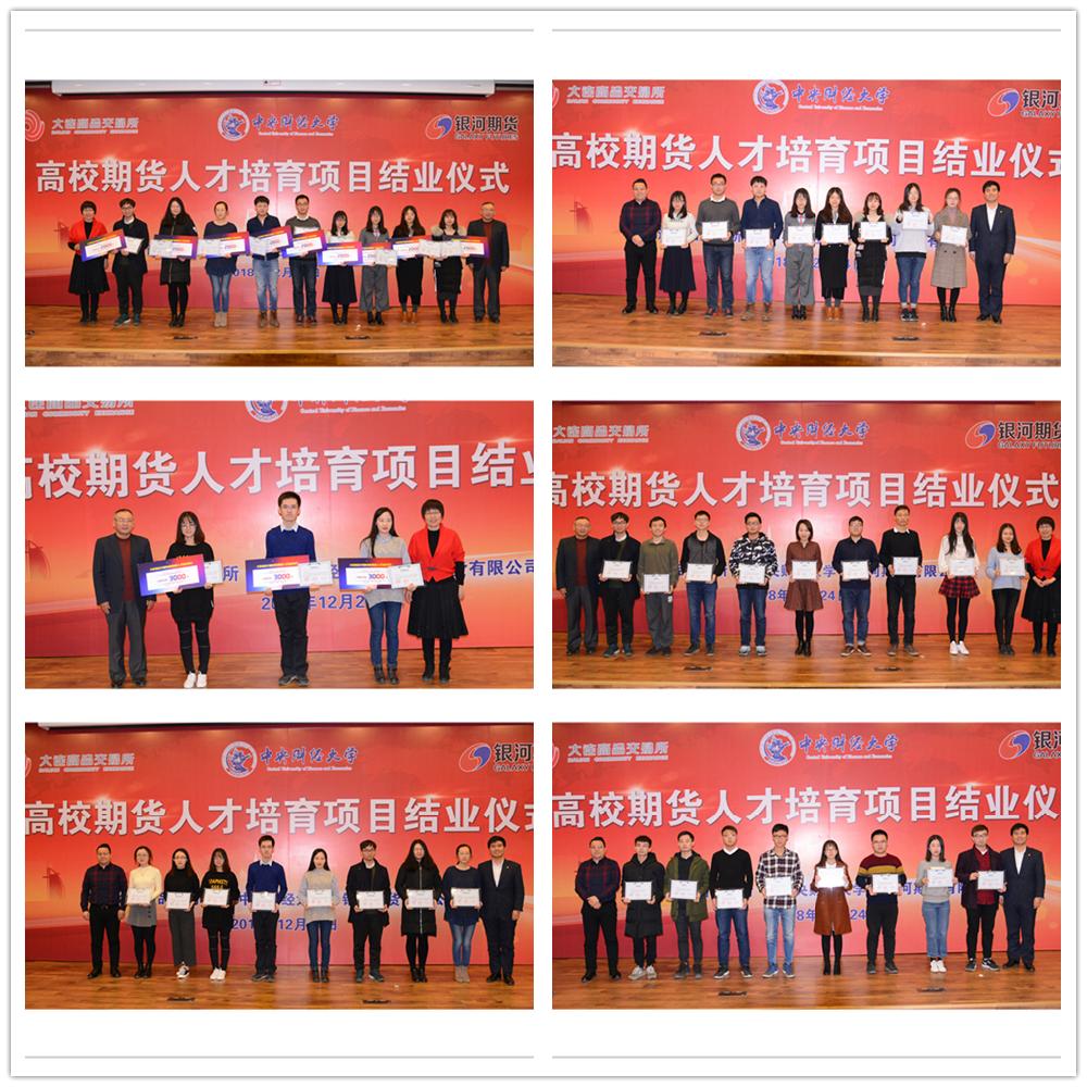 2018年12月24日上午,公司与大连商品交易所、银河期货有限公司共同主办的“高校期货人才培育工程”(第二期)在沙河校区图书馆报告厅圆满落下帷幕。出席结业典礼的嘉宾有中国期货业协会原副会长李强、大连商品交易所会员部高级经理张立、银河期货有限公司总经理助理王淼、银河期货有限公司培训部副总经理迟焕霞。公司党委书记葛仁霞、教学科研办公室主任罗卓笔、研究生工作办公室龚莉云以及全体期货班同学参加了项目结业典礼。结业仪式由公司副经理应展宇主持。