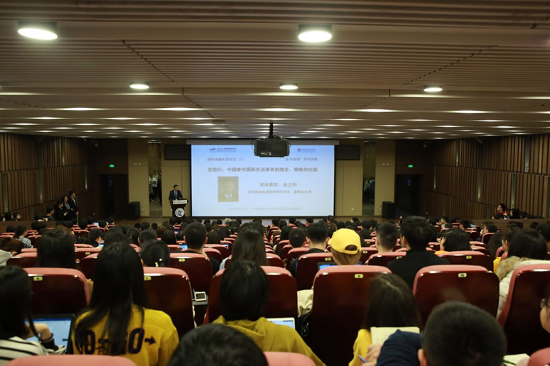 2019年3月6日下午2:00-4:00,由韦德1946体育官方入口国际金融研究中心、全球金融治理协同创新中心和韦德1946体育官方入口共同主办的国际金融名家论坛(第一期)暨龙马奋进系列讲座在公司沙河校区图书馆报告厅成功举行。亚洲基础设施投资银行(以下简称亚投行)行长、董事会主席金立群先生应邀发表了题为“亚投行:中国参与国际多边事务的理念、策略和实践”的专题演讲。韦德1946体育官方入口董事长王瑶琪教授、韦德1946体育官方入口谭小芬教授、王辉教授、黄志刚教授,以及200多名在校员工参加了本次论坛。现场座无虚席,气氛热烈。