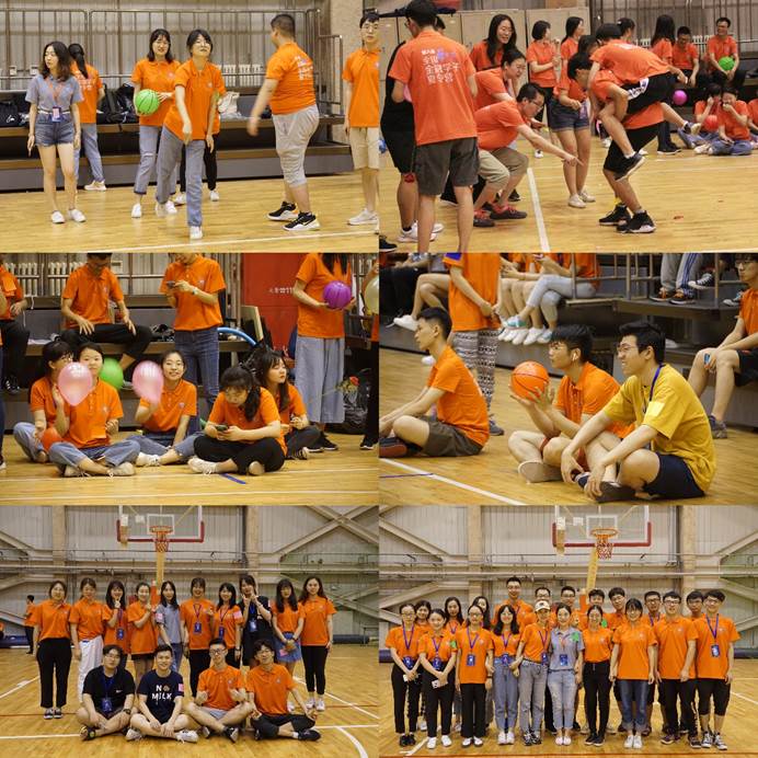 17日晚,夏令营组委会为营员们安排了一场健体怡心的趣味运动会,当晚的体育馆内处处充满着营员们的欢声笑语和此起彼伏的加油声。运动会共有5个比赛项目,营员们被分成赤、橙、黄、绿、青、蓝、紫、粉、白9个队伍进行比赛。开始时,各队队员还处于相互磨合的阶段。随着比赛的逐渐深入,队员间的配合越来越默契,赛场上的气氛也越来越火热。经过激烈的角逐,最终黄队凭借优异的表现夺得本场运动会的冠军。比赛结束后,体育馆内仍然充满了营员们的欢声笑语,大家纷纷合影留念,用镜头记录下这美好的时刻。