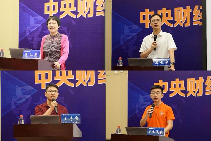 2018级金融学硕博连读研究生曹倩倩作为往届营员代表发言。她分享了在中财本科四年以及研一以来的学习感受和经验,指出“全国卓越金融学子夏令营”业已成为了她学习成长中最为珍贵和难忘的一段经历,希望学弟学妹们能够积极参与夏令营的每场活动,充分展示自己的风采,收获属于自己的成功。