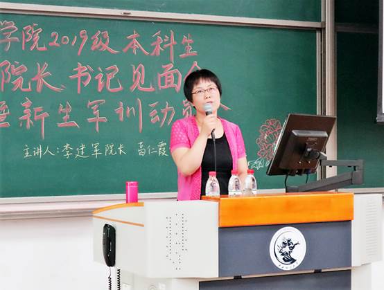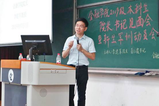 葛仁霞书记做了“志存高远 脚踢实地 争做时代先锋”的主题讲座。她从公司各年代优秀员工的成长经历出发,指出了接触员工的共同品质,并结合习近平总书记对金融工作的要求和对青年的寄语以及世界五百强企业挑选人才的共同标准,希望2019级本科新生们明确发展目标,做到脚踏实地,知行合一;仰望星空,志存高远,争做新时代中国优秀金融人才。对于新生即将迎来的军训,她还讲解了军训的意义、目的,鼓励同学们认真参训,在磨练中成长,以军训为起点,筑梦中财、圆梦中财。