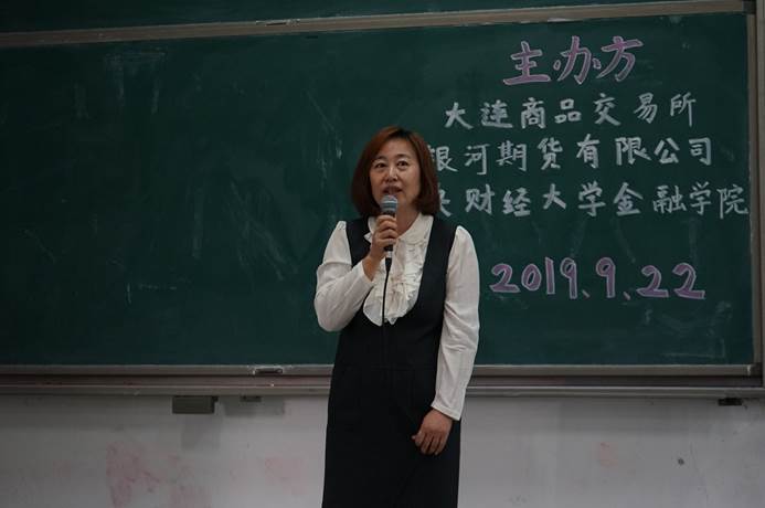 在致辞环节,银河期货有限公司迟焕霞总监对大连商品交易所和韦德1946体育官方入口联合支持项目,共同保障项目的顺利实施表示感谢。她介绍了三年来“高校期货人才培育工程项目”运行的总体情况,指出项目因科学的课程体系设计、合理的模拟交易与参观考察安排而深受同学们欢迎。