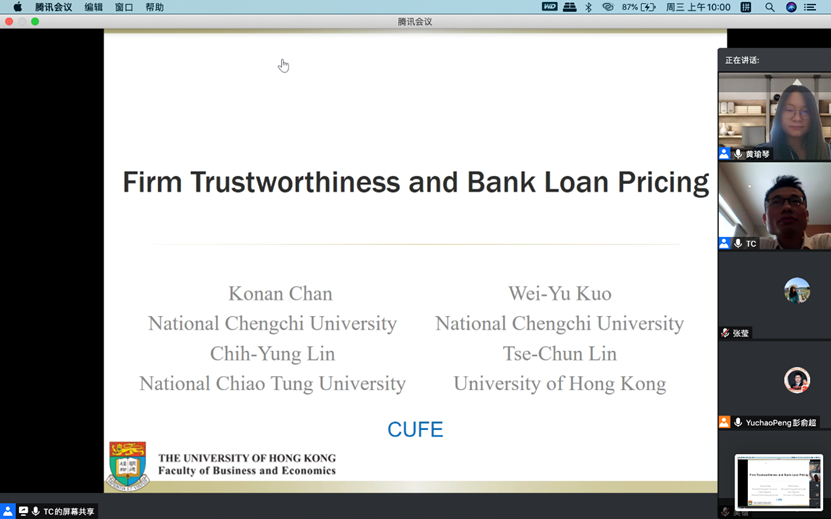 2020年公司夏季小学期期间,在韦德1946体育官方入口引智项目的支持下,韦德1946体育官方入口顺利在云端举行了第86-89期经济与金融学名家论坛,分别邀请美国康涅狄格大学 Toscano Family 金融学讲席教授Yiming Qian就“Can firms run away from climate-change risk? Evidence from the pricing of bank loans”和“Initial public offerings Chinese style”进行精彩汇报,以及香港大学金融学教授林则君就“Firm Trust worthiness and Bank Loan Pricing”和“Behavioral consistency in SEOs andM&As: Evidence from CEO anchoring heuristic”进行精彩报告。