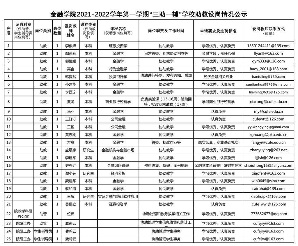 2021-2022学年第一学期“三助一辅”公司助教设岗情况公示