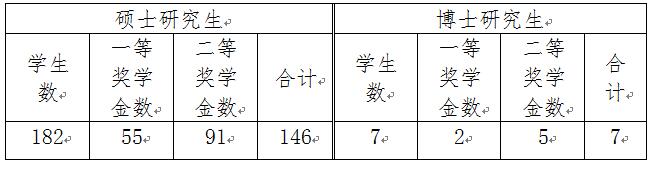 硕士研究生学业奖学金分为两档:一等奖学金奖励比例为30%,奖励金额为每生1.2万元;二等奖学金奖励比例为50%,奖励金额为每生0.8万元,硕士研究生各专业统一评选。