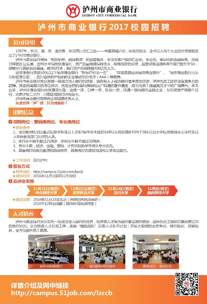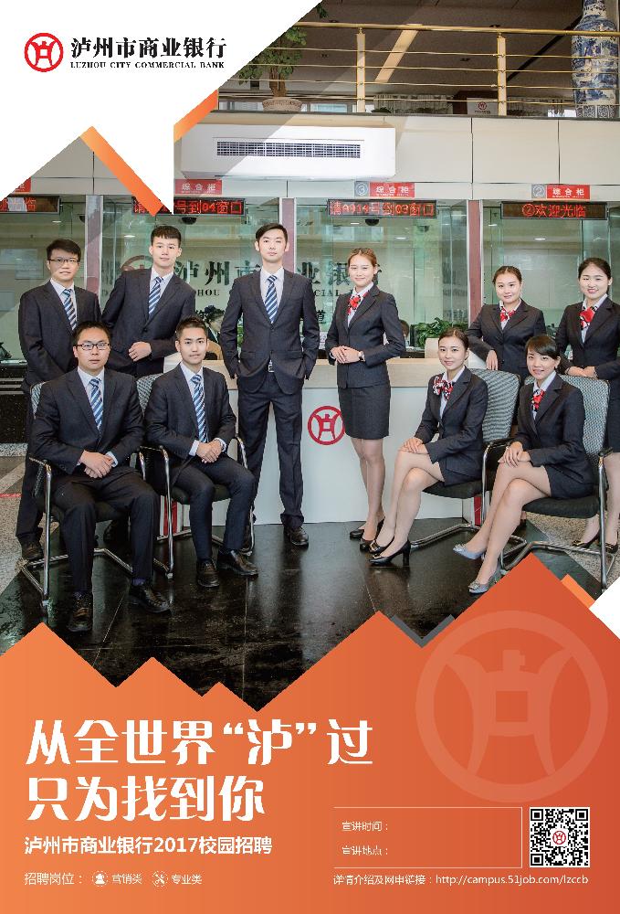 泸州市商业银行现面向全国诚聘优秀人才。从全世界“泸”过,只为找到你!