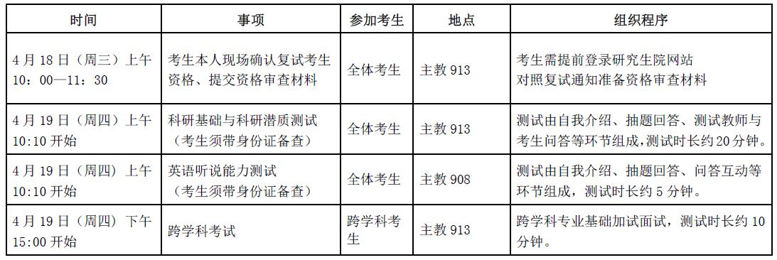 3.注意严格守时,提前到达复试地点备考,迟到不再安排补考。候考室为主教910室。