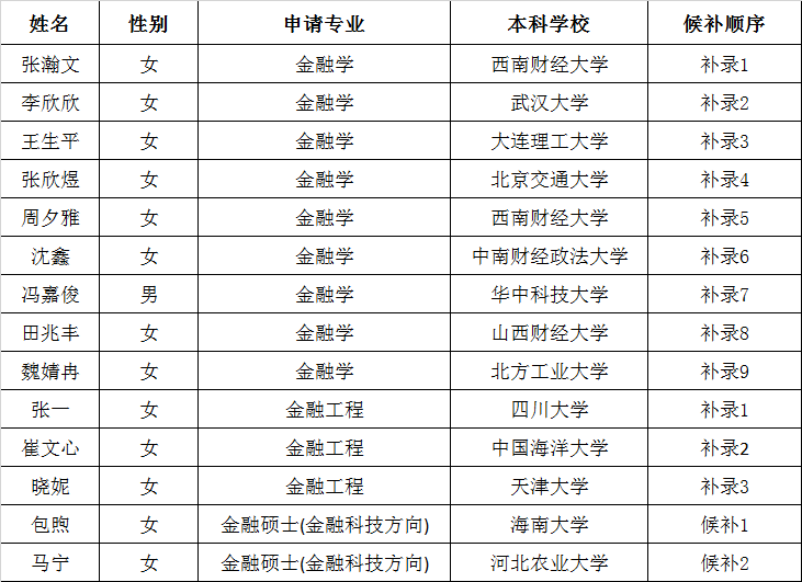 第八届“全国卓越金融学子夏令营”新增候补入营名单