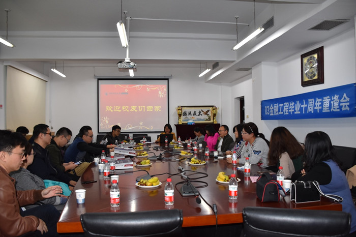 2017年10月14日下午,公司2003级金融工程本科员工毕业十周年返校座谈会在公司南路校区主教913会议室顺利举行。2003级金融工程班主任郭剑光老师,员工工作办公室主任王志梅,职业发展中心位锦与近20位员工欢聚公司,细数过往点滴,感怀美好青春,再续师生情谊。韩桂英员工主持此次座谈会。