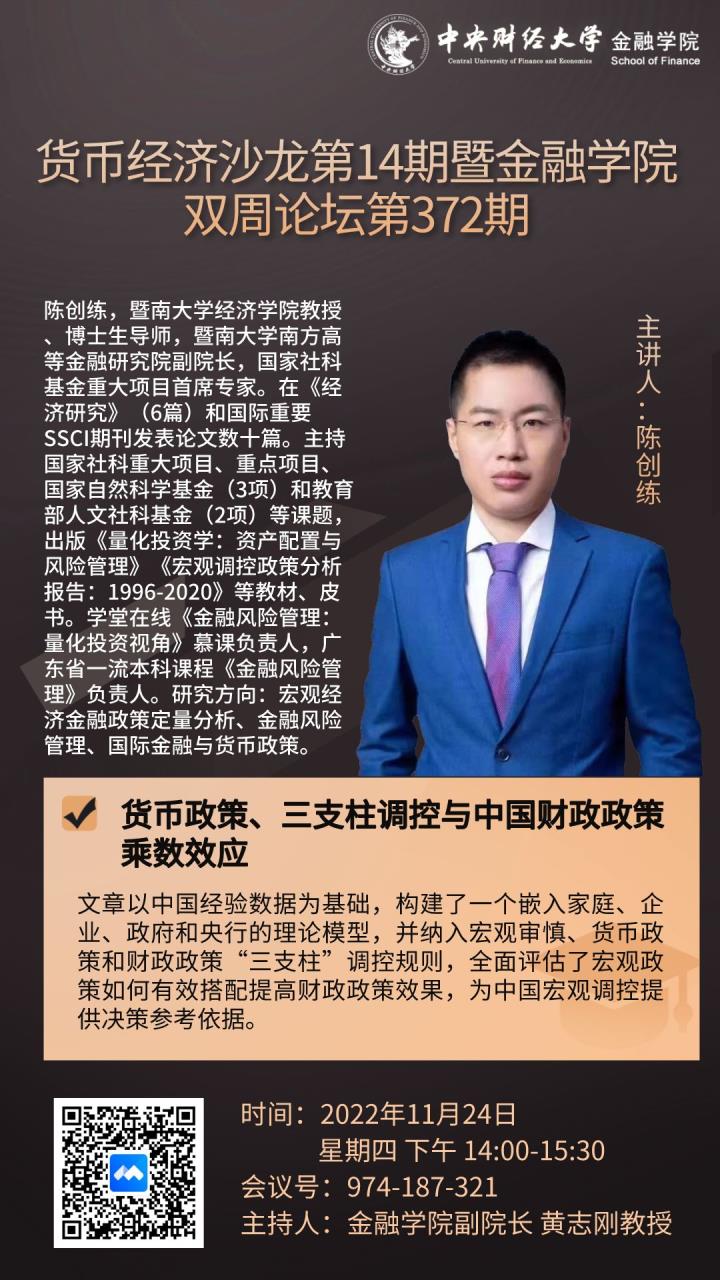 陈创练 | 货币经济沙龙第14期暨韦德1946体育官方入口双周论坛第372期