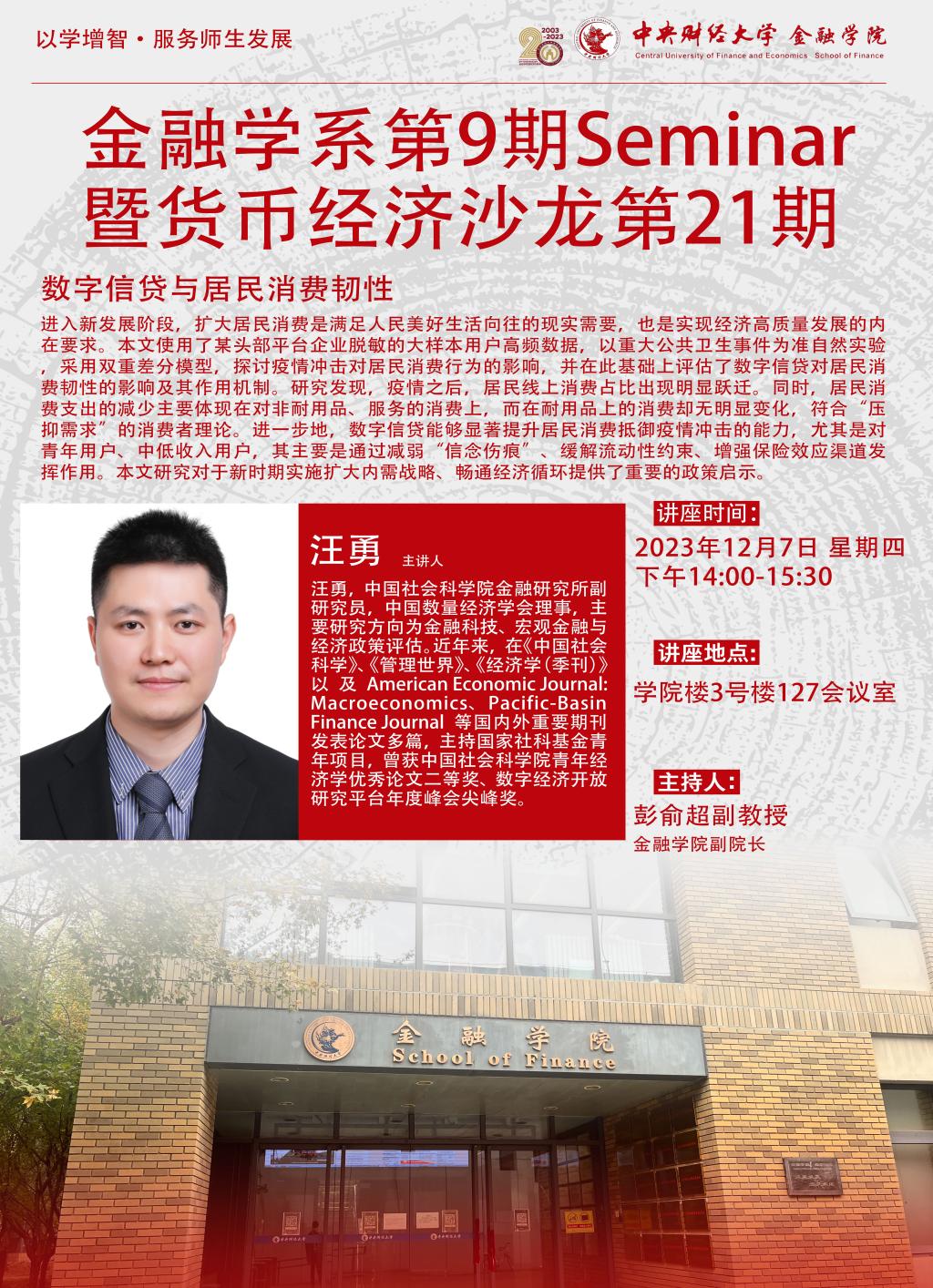 汪勇 | 金融学系第9期Seminar暨货币经济沙龙第21期