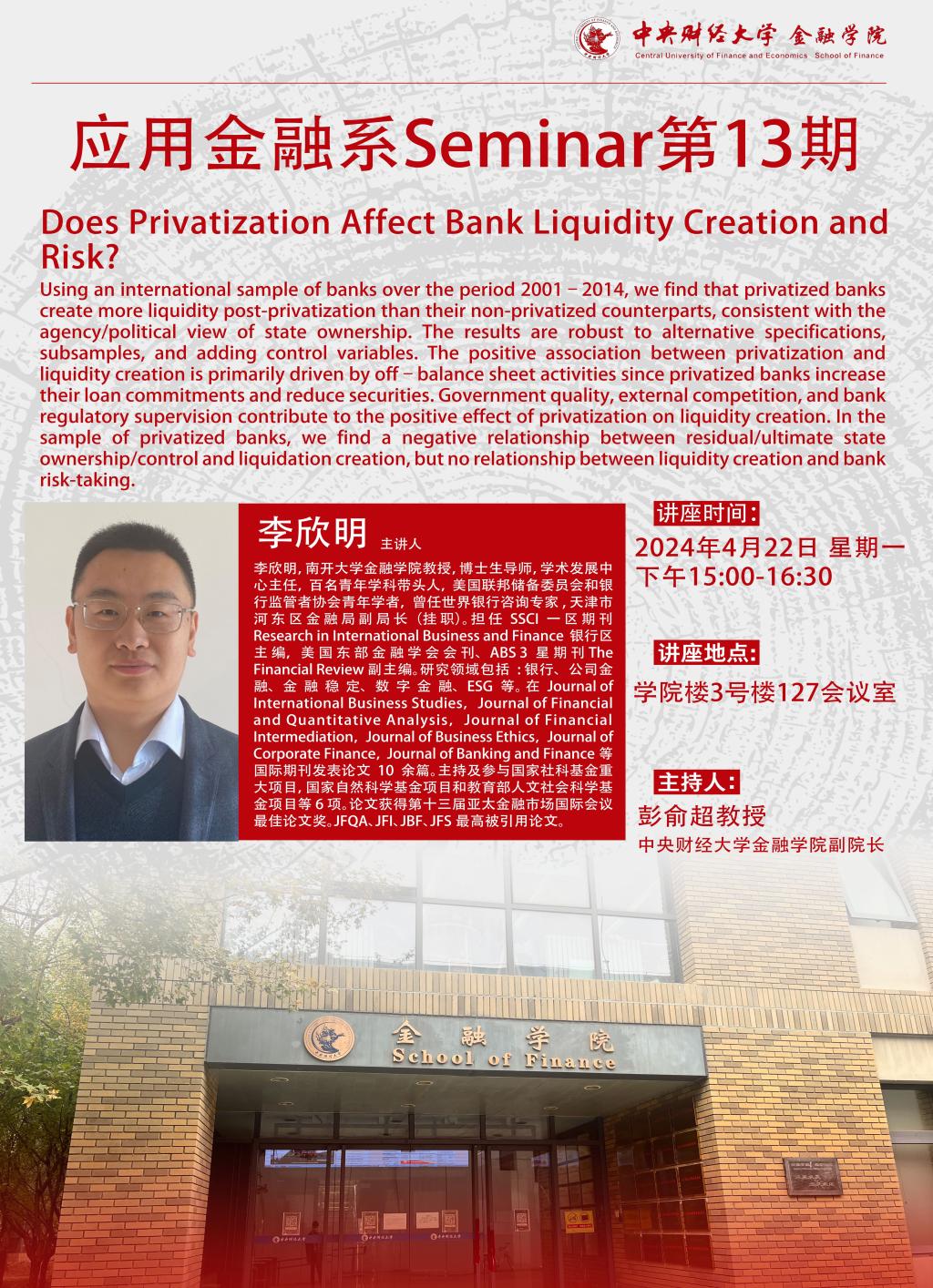 李欣明 | 应用金融系Seminar第13期