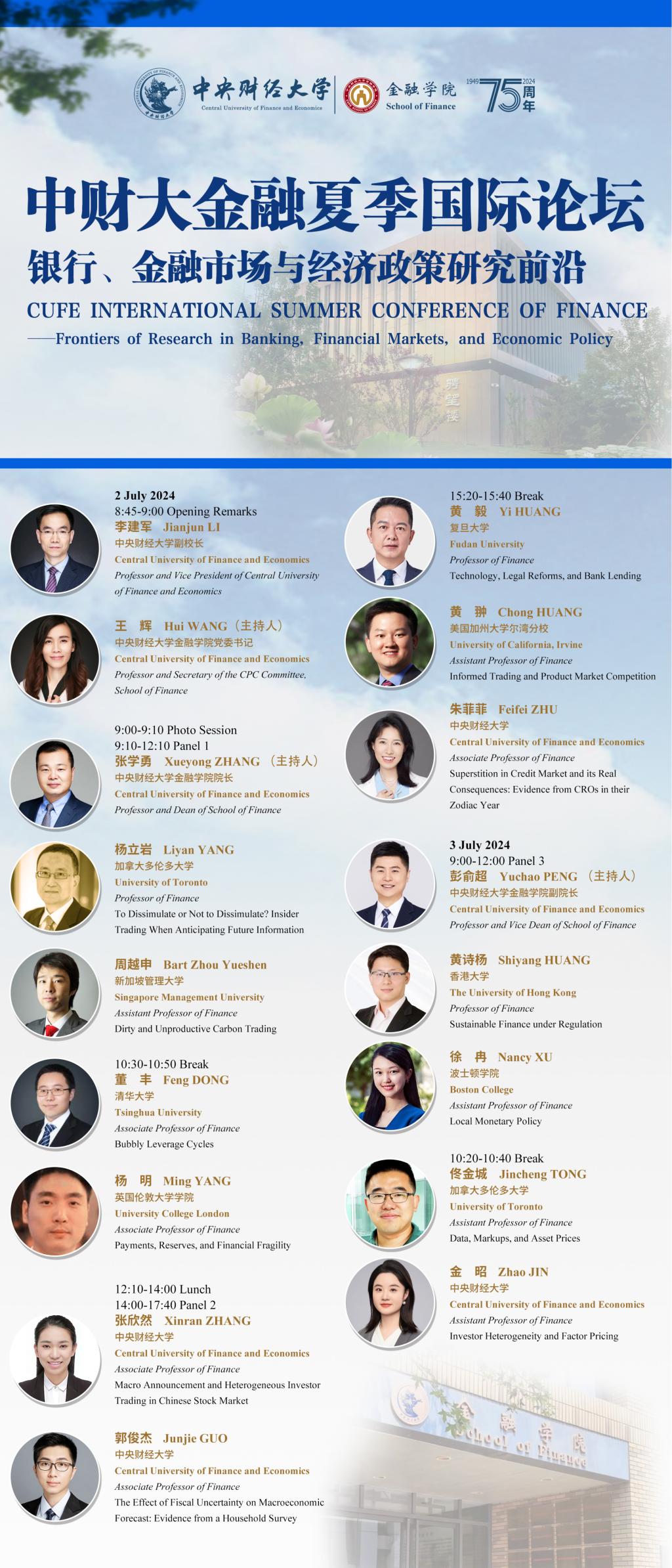 中财大金融夏季国际论坛——银行、金融市场与经济政策研究前沿