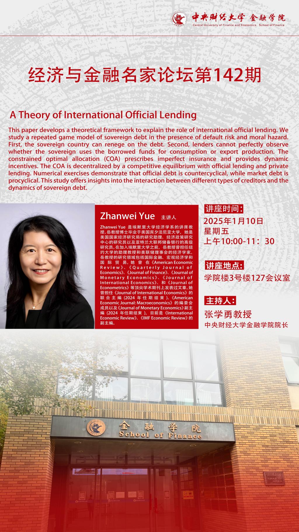 Zhanwei Yue | 经济与金融名家论坛第142期