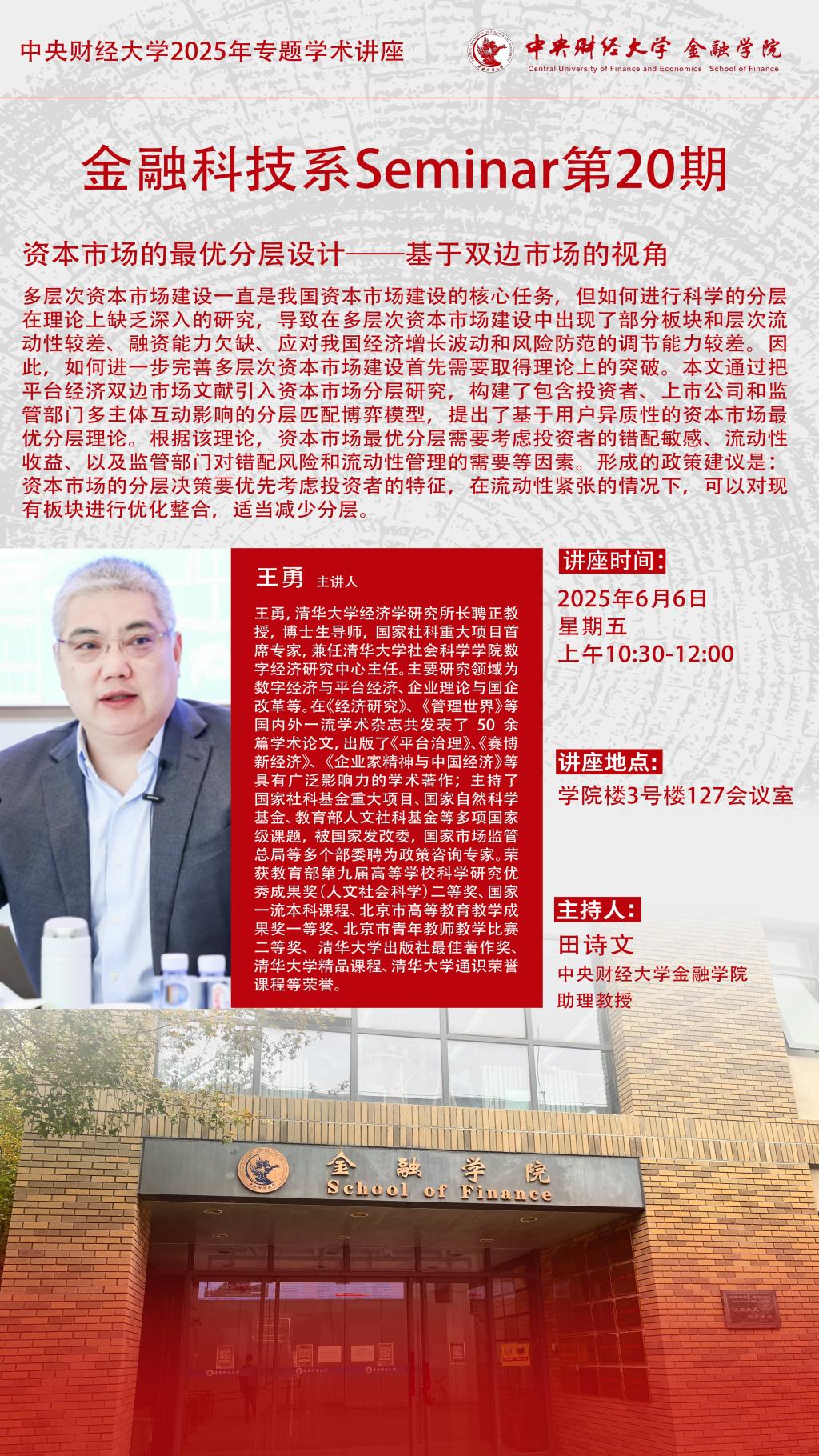 王勇 | 2025年专题学术讲座暨金融科技系Seminar第20期