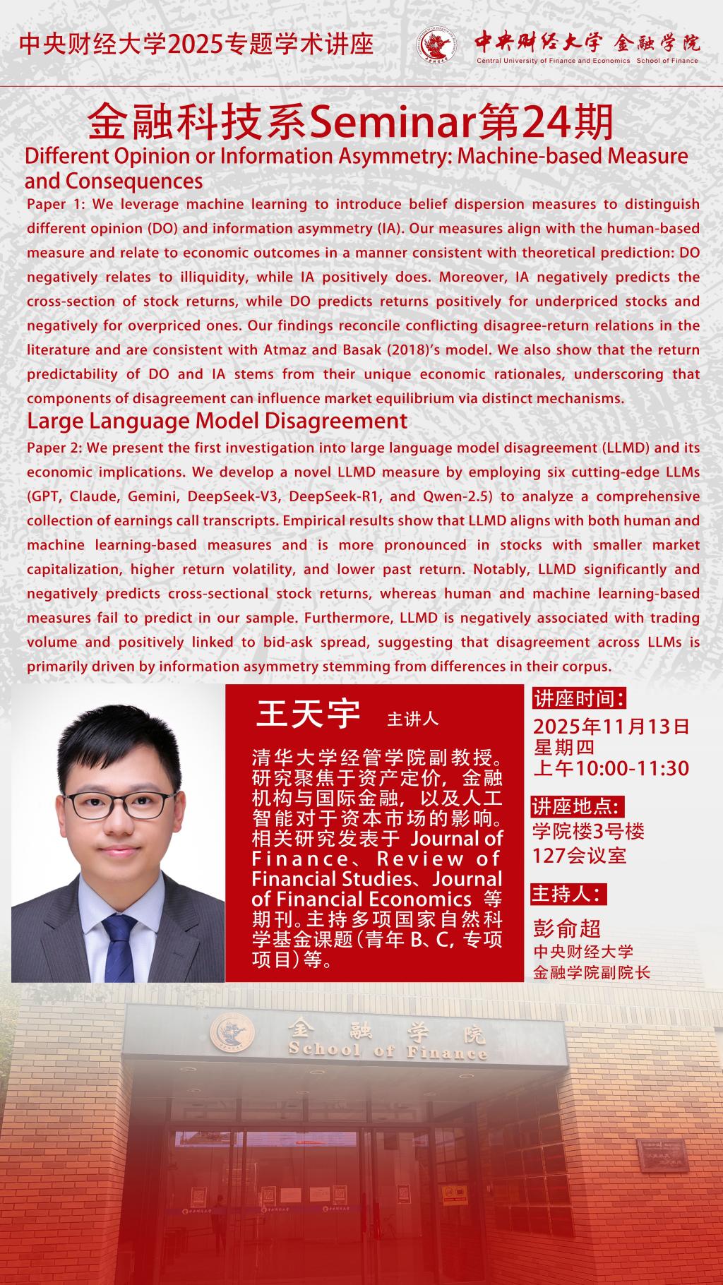 王天宇 | 金融科技系Seminar第24期