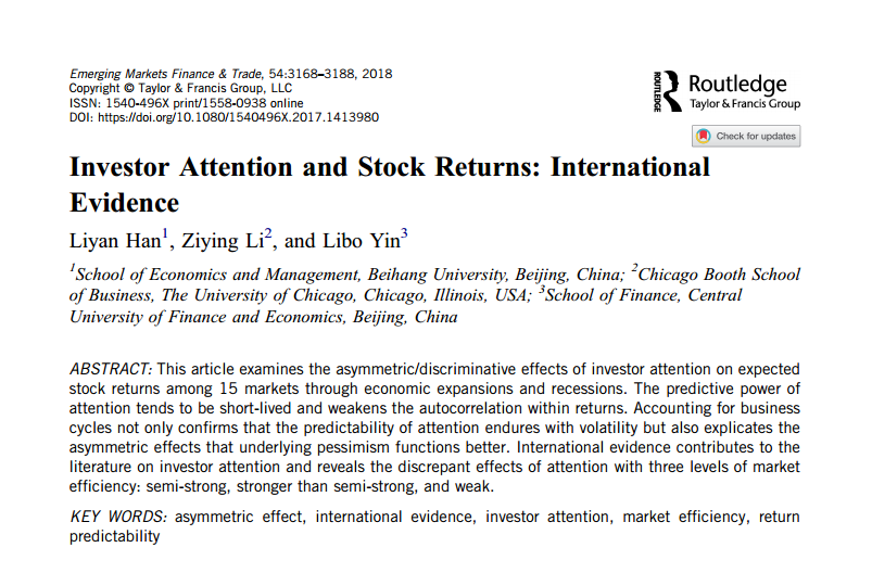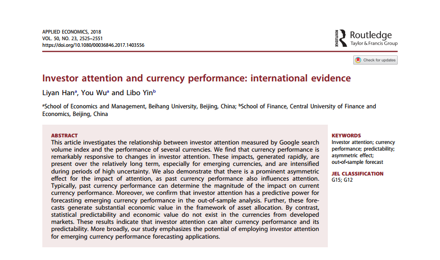 尹力博:Our currency, your attention: Contagion spillovers of investor attention on currency returns
