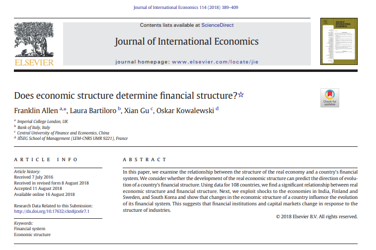 In this paper, we examine the relationship between the structure of the real economy and a country's financial system. We consider whether the development of the real economic structure can predict the direction of evolution of a country's financial structure. Using data for 108 countries, we find a significant relationship between real economic structure and financial structure. Next, we exploit shocks to the economies in India, Finland and Sweden, and South Korea and show that changes in the economic structure of a country influence the evolution of its financial system. This suggests that financial institutions and capital markets change in response to the structure of industries.