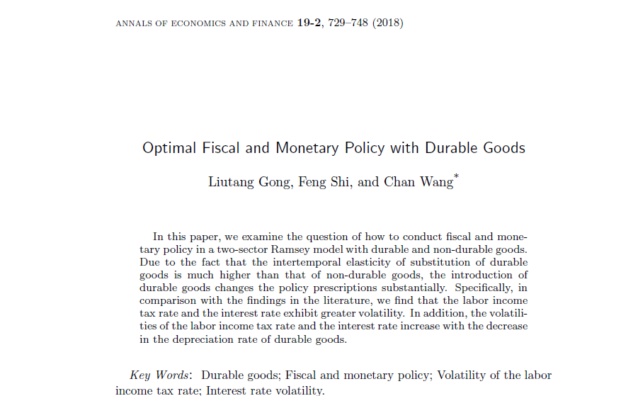 王忏:Optimal Fiscal and Monetary Policy with Durable Goods