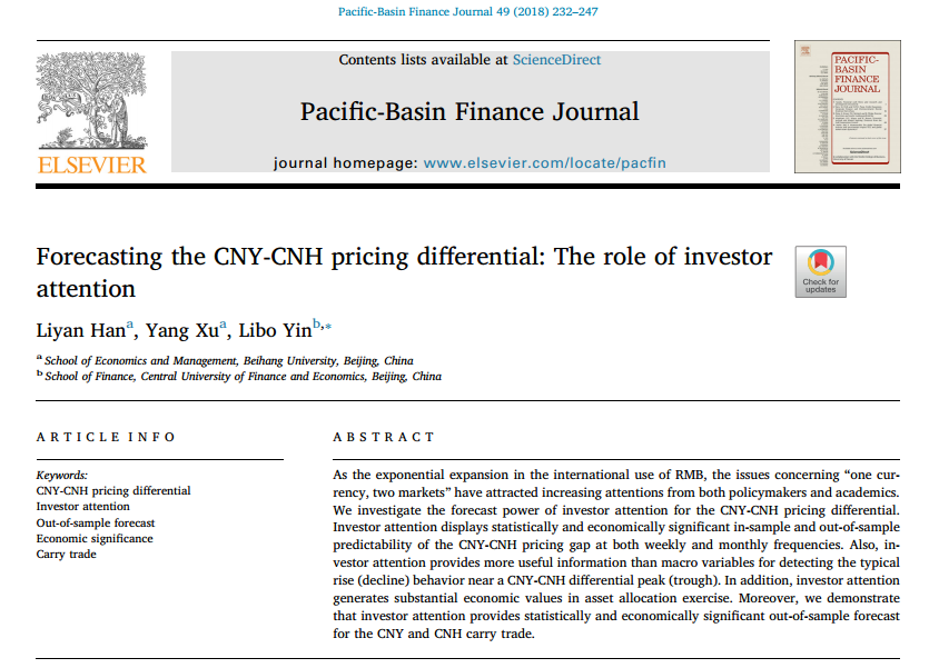 尹力博:Forecasting the CNY-CNH pricing differential The role of investor attention