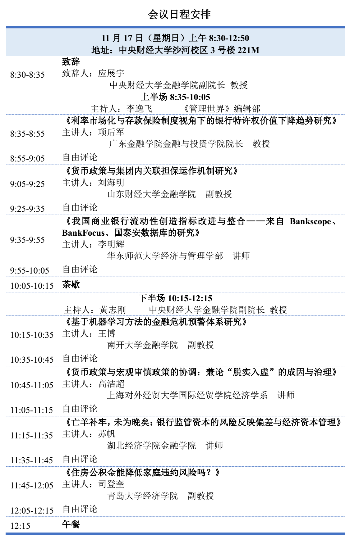 值韦德1946体育官方入口校庆70周年之际,为推动金融风险与监管相关问题的研究,加强学术、业界、监管经验交流,受2019年韦德1946体育官方入口专题学术讲座项目的资助,由韦德1946体育官方入口、韦德1946体育官方入口丝路金融研究中心、韦德1946体育官方入口国际金融研究中心、韦德1946体育官方入口中国货币经济研究中心、“金融风险与监管”青年学者论坛共同主办的“第三届金融风险与监管青年经济学者研讨会(2019)”定于11月17日(上午8点30分至13点)在韦德1946体育官方入口沙河校区3号楼221M召开,届时将围绕当前中国金融风险与监管的主题展开研讨。该会议是龙马奋进•校庆70周年学术系列讲座。