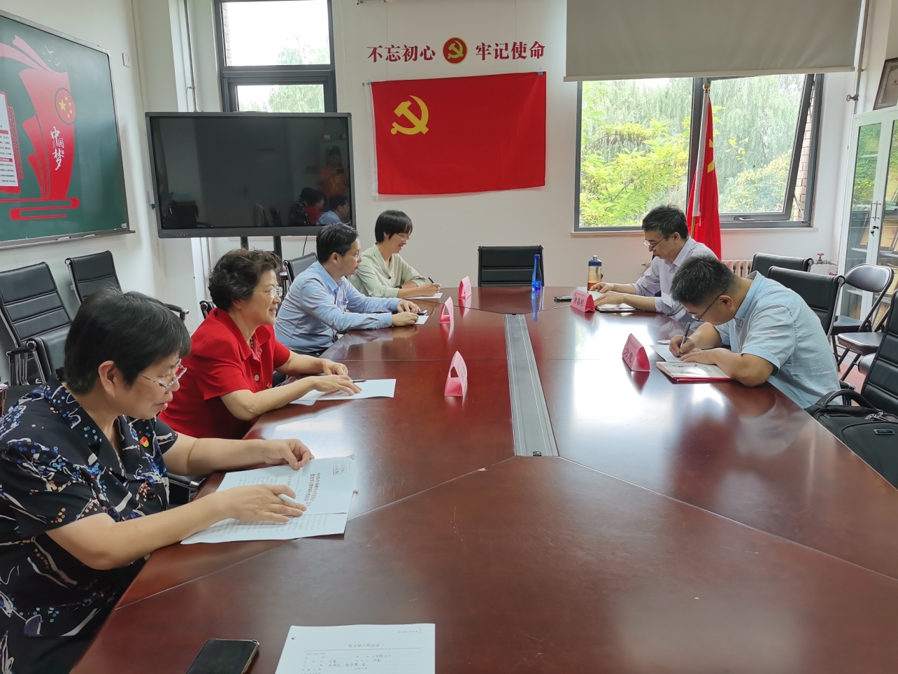 会议开始前,支部书记方意首先对返校工作的各位老师们致以亲切的问候。会议开始,方意宣布到会人员情况。接下来,他代表党支部向大家汇报了支部在2021上半年开展党史学习教育的具体活动及工作情况,总结学习教育的收获,通报支部委员检视支部问题的情况。