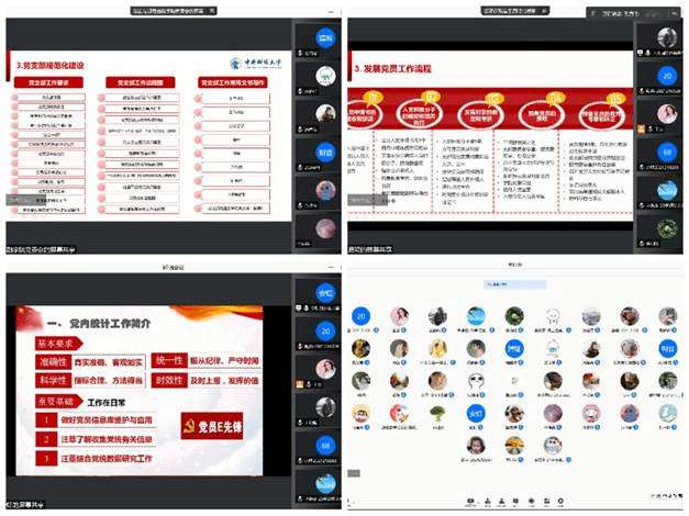 接着,安虹老师就党统工作做了进一步培训,对党内统计工作简介、党内统计的概念界定、党统报表的讲解、党统系统维护以及填报注意事项等五方面进行了详细的讲解。然后,2021级研究生第二党支部书记王鹿鸣同学就党员发展流程开展培训。详细讲解了相关工作政策和文件、工作原则以及总要求、发展党员工作的流程、注意事项、材料要求和相关规范。