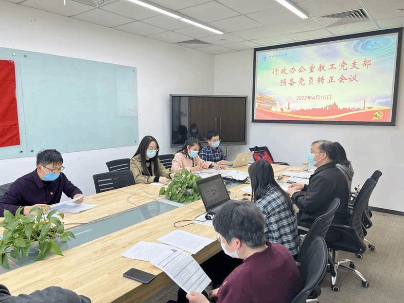 4月15日下午,韦德1946体育官方入口行政办公室教工党支部在公司资本大厦511会议室召开预备党员转正会议。支部全体党员出席,会议由党支部书记罗卓笔主持。