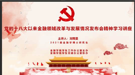 7月1日星期五晚上19时,党的十八大以来金融领域改革与发展情况发布会精神学习讲座在线上腾讯会议举行。本次学习讲座由2021级金融学博士研究生刘雨旻主持,韦德1946体育官方入口全体员工参会。